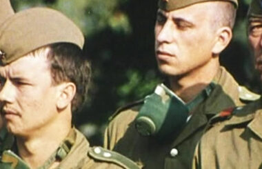 La projection du film Le Cheval qui pleure (Дорогою Ціною), 1957