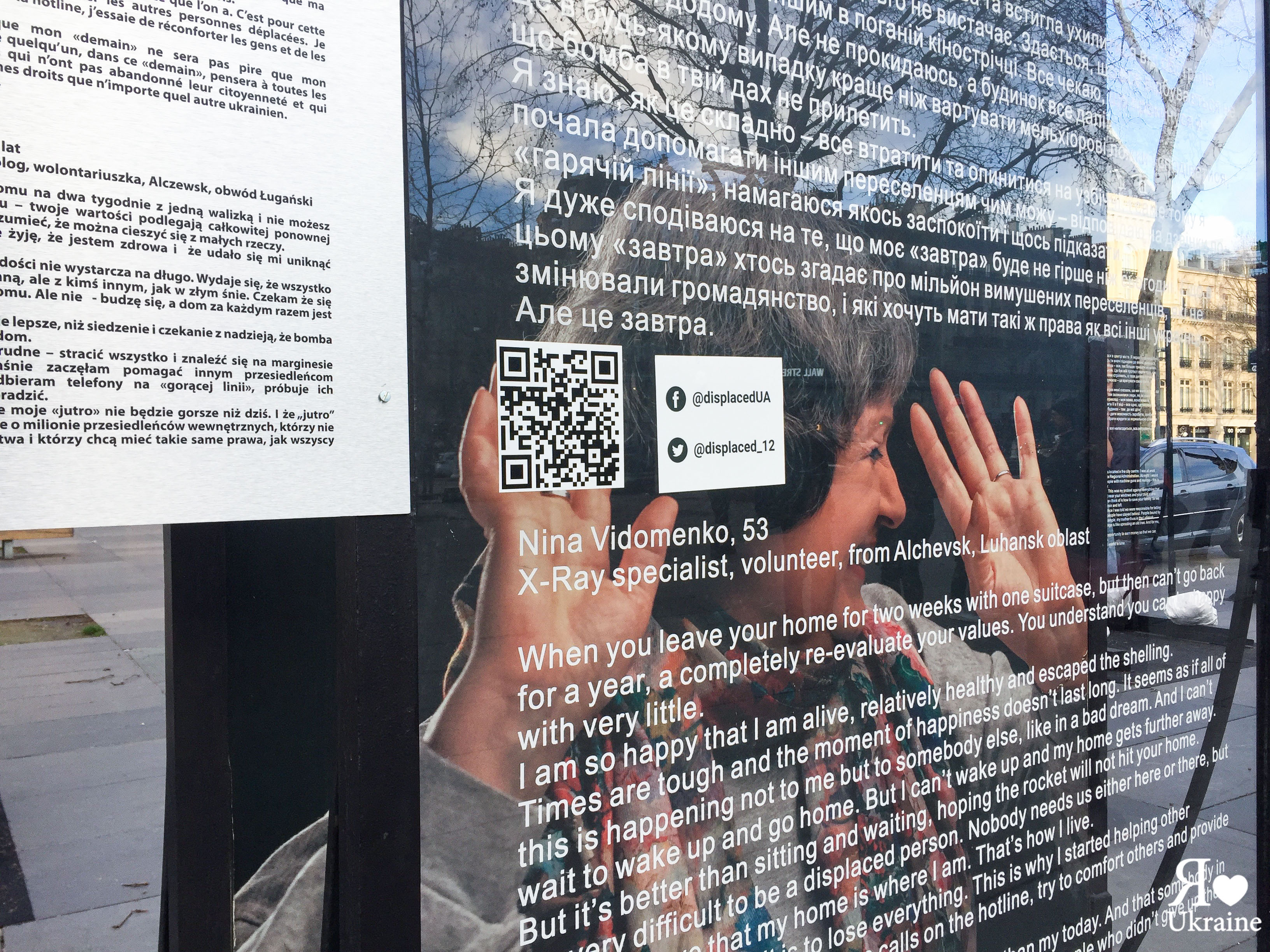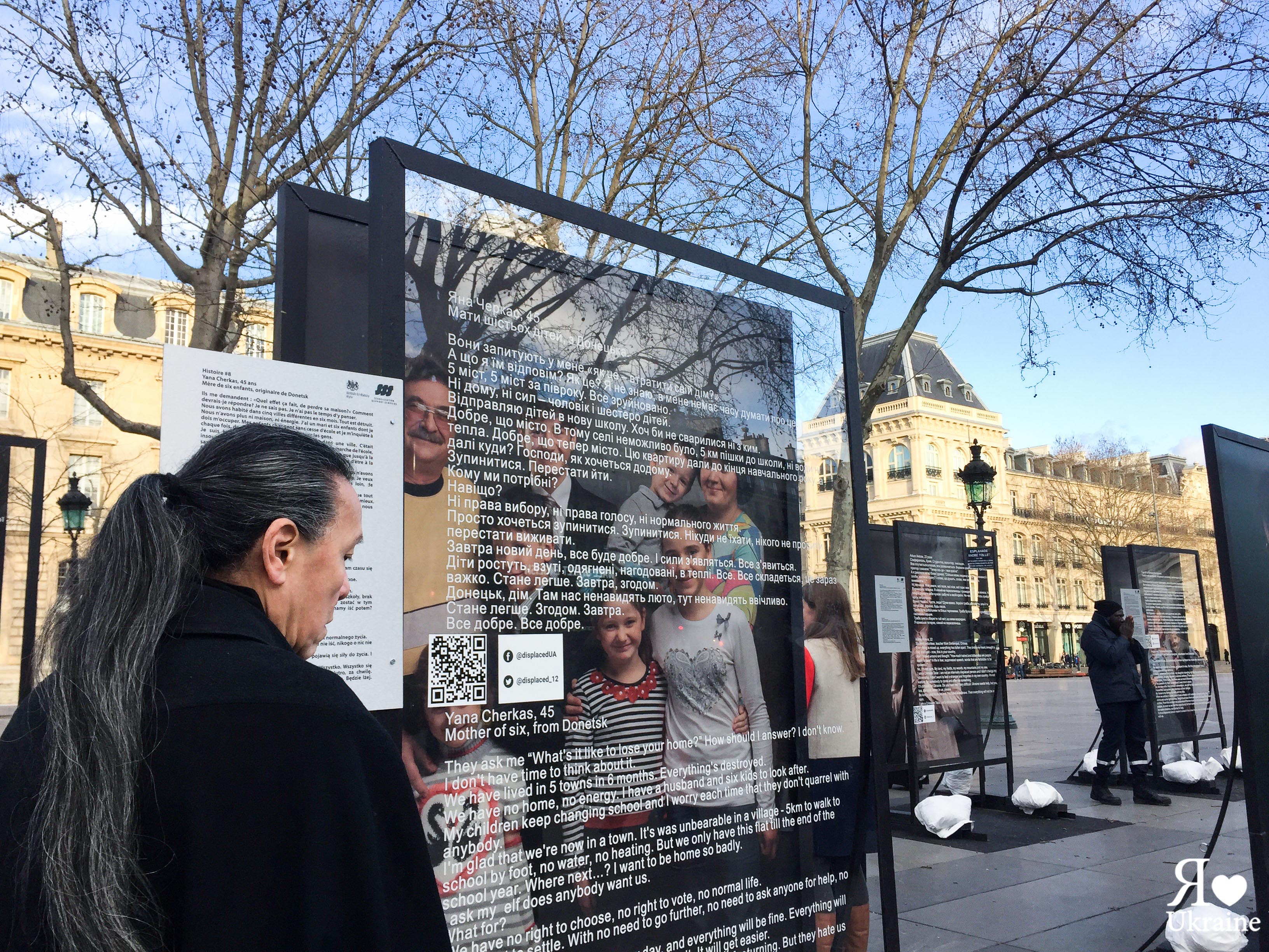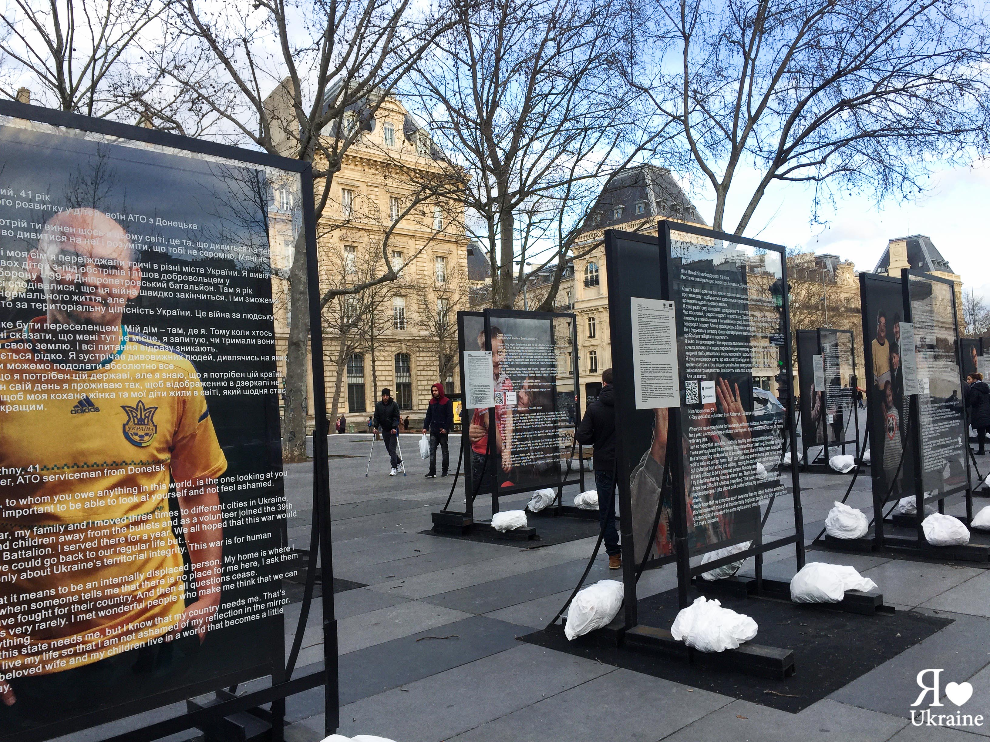 Aujourd’hui, à la symbolique place de la République il y a eu du vent, beaucoup de vent. Mais il y a eu aussi ces photos imposantes qui lui résistaient. Exposées derrière les murs de mots en plexiglass, ces photos nous parlent. Guerre, aide des volontaires, pourquoi, pays, maison, obligé, immigré, partir, comment vivre, famille, demain, espoir, bombardements. Des gens forts et leurs familles, un peu perdus, contraints de vivre et de reconstruire leurs vies, sans le demander… Déplacés, abandonnés, rejetés. Pas toujours facile de lire leurs mots sans avoir des larmes aux yeux, peut-être, suis-je juste trop sensible…