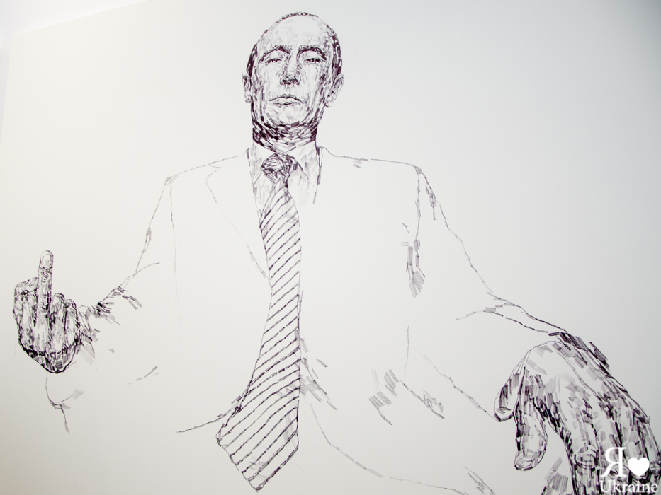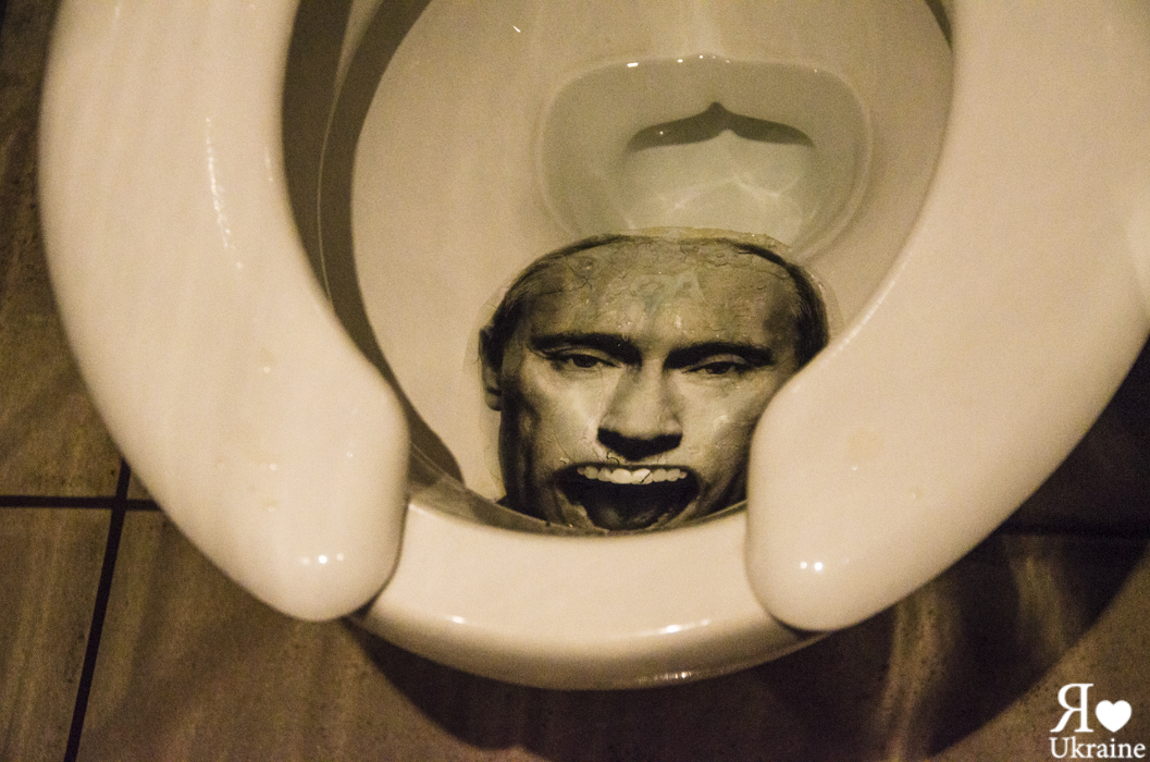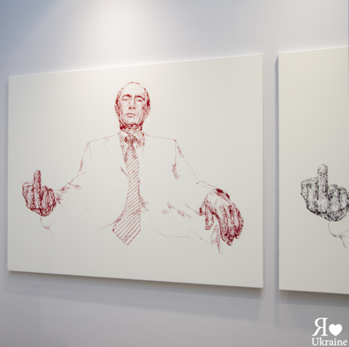 Ensuite, les visiteurs ont pu contempler quelques œuvres avec Poutine comme héros principal. Nous vous laissons juger « Houtine pouy » ou encore « Poutine », sans oublier les toilettes du Grand Palais!