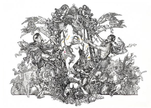 Son œuvre fait montre d’une esthétique masculine, pleine de révolte, de sens et d’amour envers l’histoire et le peuple ukrainiens. L’auteur a créé une série unique de portraits de tous les hetmans* ukrainiens.