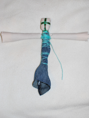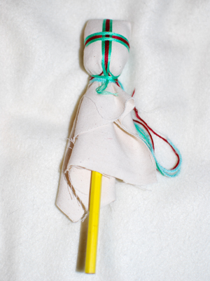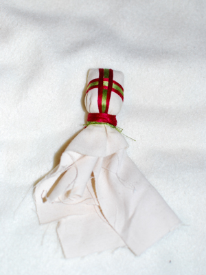 - Habillez la motanka d’une jupe attachée à la taille et masquez avec un tablier et une ceinture.