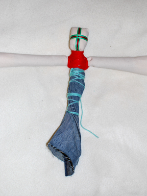 - Enroulez le crayon d’une ou plusieurs couches de tissu épais et attachez les bras (encore un rouleau).