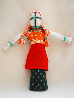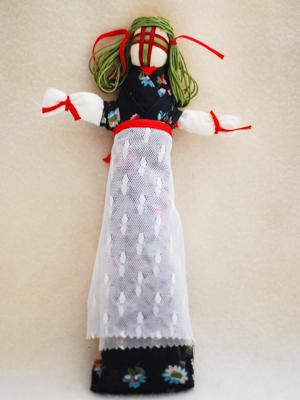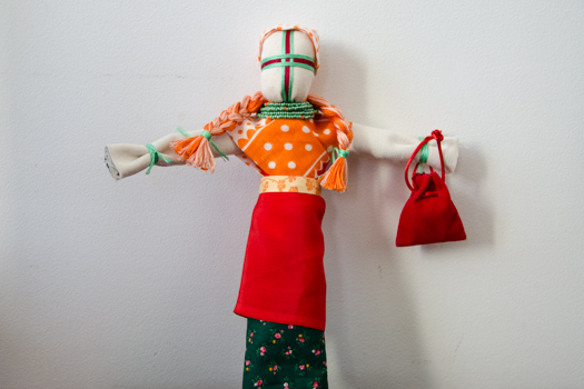 - Ajoutez des accessoires si vous voulez : collier de perles, couronne de fleurs, bandeau, petit sac à main, gilet etc. La façon dont vous habillerez la motanka, elle pourrait symboliser l’argent, l’amour, la paix dans la maison.