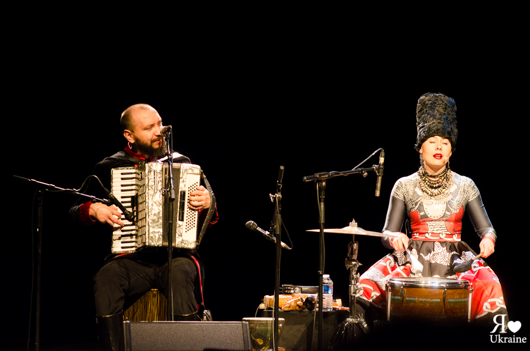 Les magnifiques DakhaBrakha ont donné leur concert à déjà habituel théâtre Monfort dans le 15e arrondissement de Paris. Comment passer à côté? C’est toujours aussi envoûtant, ce mélange de la musique ethnique, traditionnelle, des notes modernes, des instruments oubliés, des voix qui nous gèlent les os… Les percussions nous font bouger les pieds au rythme sacré. L’image du quatuor en leurs costumes splendides et pleins d’histoire, complète cette ambiance mystérieuse et chacun imagine qu’ils ne jouent que pour lui. De mon côté, je vais jamais me lasser d’écouter Yagudky qui me remplit à chaque fois d’émotions fortes, inexplicables et qui font surgir dans la subconscience des rêves-souvenirs d’une autre époque, celle de mon arrière-grand-mère, peut-être…