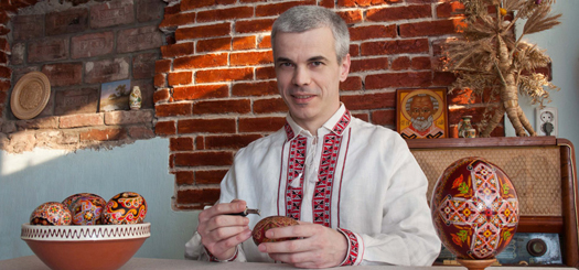 Et pour élargir votre inspiration, nous voudrions parler aujourd’hui d’Oleg Kirashchuk. Il s’agît d’un pyssankar d’une renommée internationale dans l’art de décoration des œufs, d’origine de Kolomiya. Le mot « pyssankar » provient du mot pyssanka, qui veut dire celui qui crée des pyssanka, il s’agît souvent des personnes dont c’est le métier ou la passion.