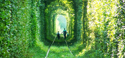 L’architecte de cet endroit magique n’est nul autre que la nature qui a envahi les lieux en recouvrant un chemin de fer. C’est un couloir de plus de 2 kilomètres au sein duquel circule un ancien train, ce qui ne permet pas à la verdure de l’envahir. Le train dessert périodiquement deux destinations : une entreprise de transformation de bois et une division militaire. Les locaux appellent ce passage en rigolant le métro de Klevan.
