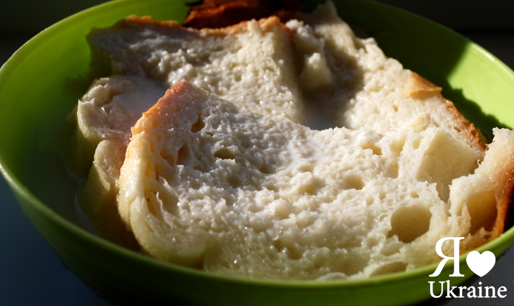 4. Coupez 2-3 morceaux de pain de mie et trempez-les dans le lait.