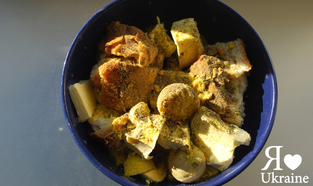 5. Ensuite, essorez le pain en le rajoutant dans le bol avec les jaunes d’œufs. Dans le même bol, mettez un peu de beurre (50gr), de sel, de poivre.