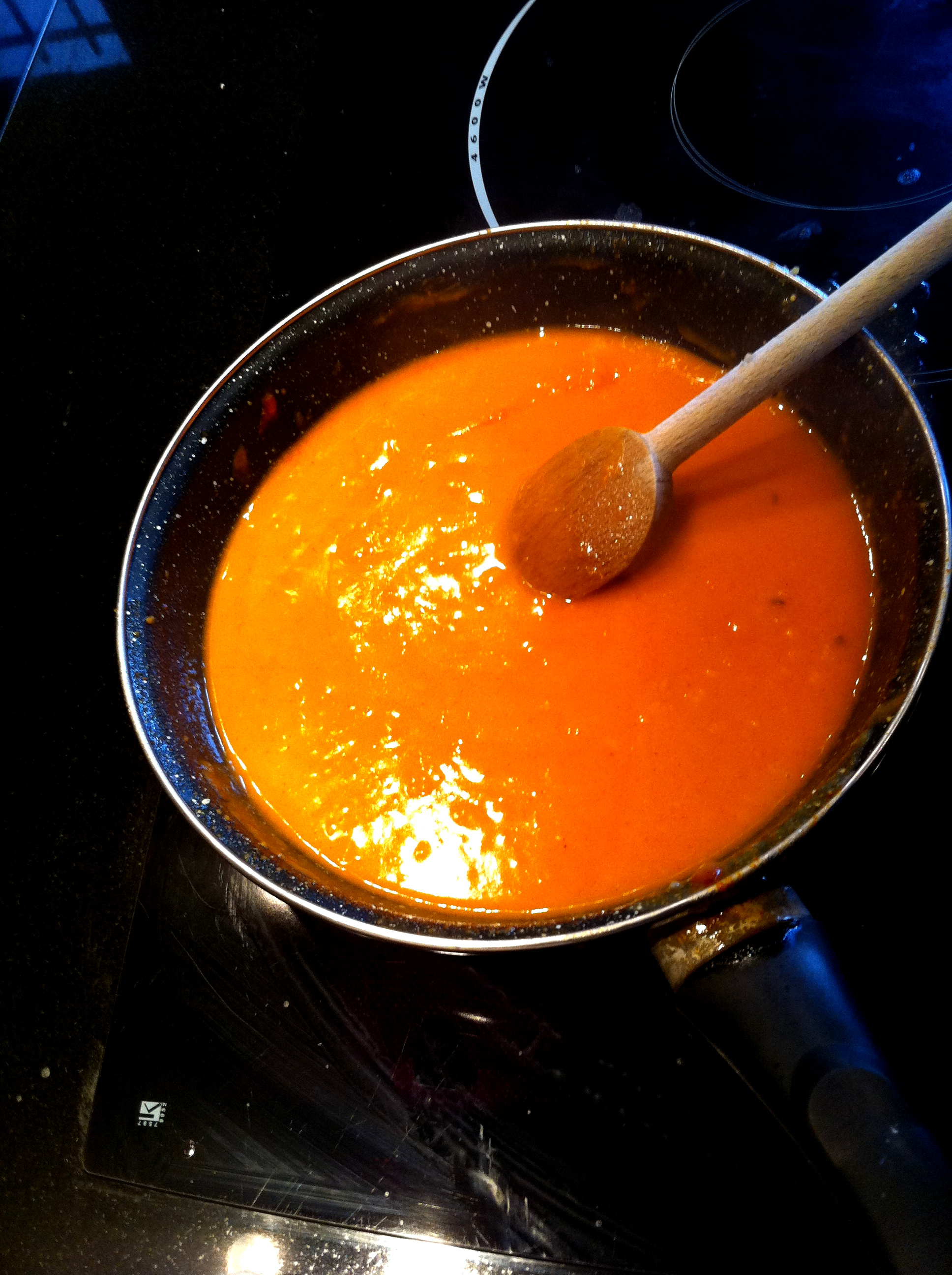 Une fois c’est fait, éteignez le feu et rajoutez un peu de paprika ( Note : il est toujours important d’éteindre le feu avant de rajouter de la paprika pour que l’épice ne brûle pas, mais au contraire donne toute sa saveur). Dans la poêle rajoutez cuillère par cuillère au feu doux de l’eau de la casserole, tout en remuant. Dès que vous avez une consistance assez liquide, verser la dans la casserole. Ensuite, rajoutez un peu de crème fraiche directement dans la casserole, en bien remuant la soupe.