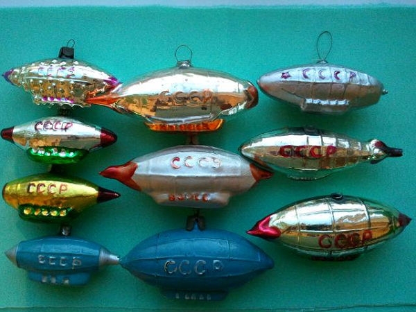 De même il existe des décorations de Noël avec des étoiles rouges ou des dirigeables.