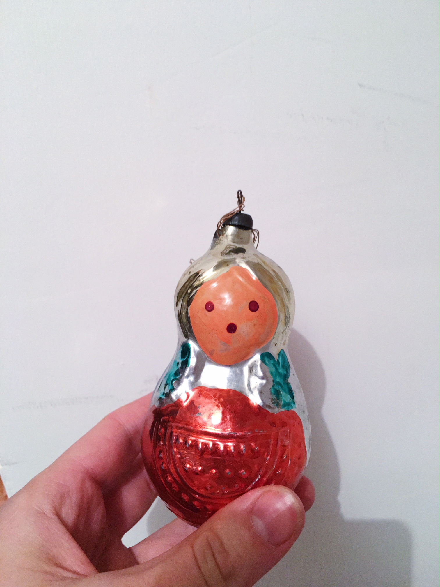 Chez de nombreux ukrainiens le sapin est décoré d’anciennes décorations faites à l’époque soviétique, ce qui lui donne actuellement un petit côté vintage. Les décorations les plus anciennes sont faites en papier mâché, en carton pressé ou en ouate. On les trouve assez rarement vu la matière. Puis les boules de Noël ont été faites en verre et il en reste encore pas mal.