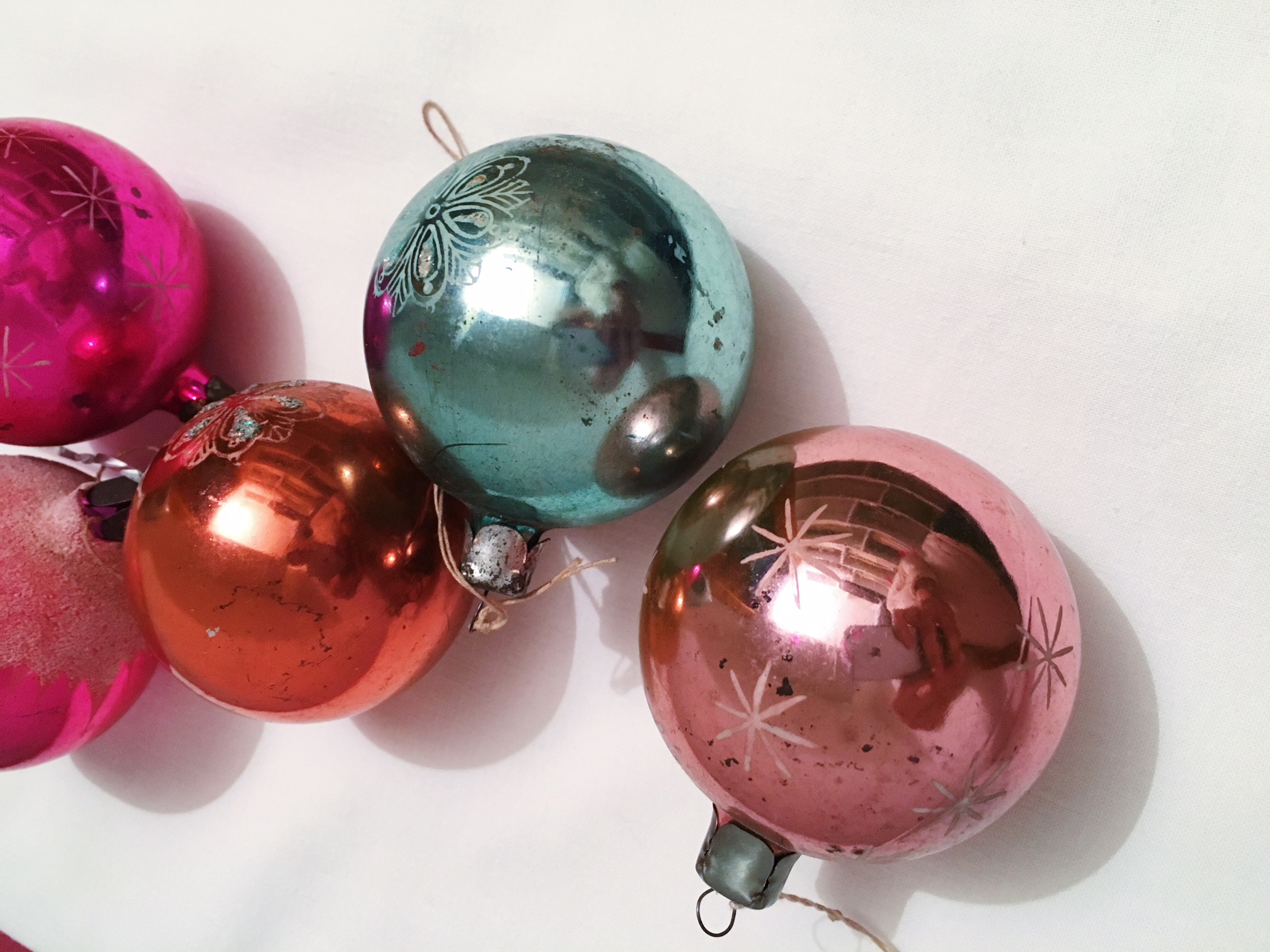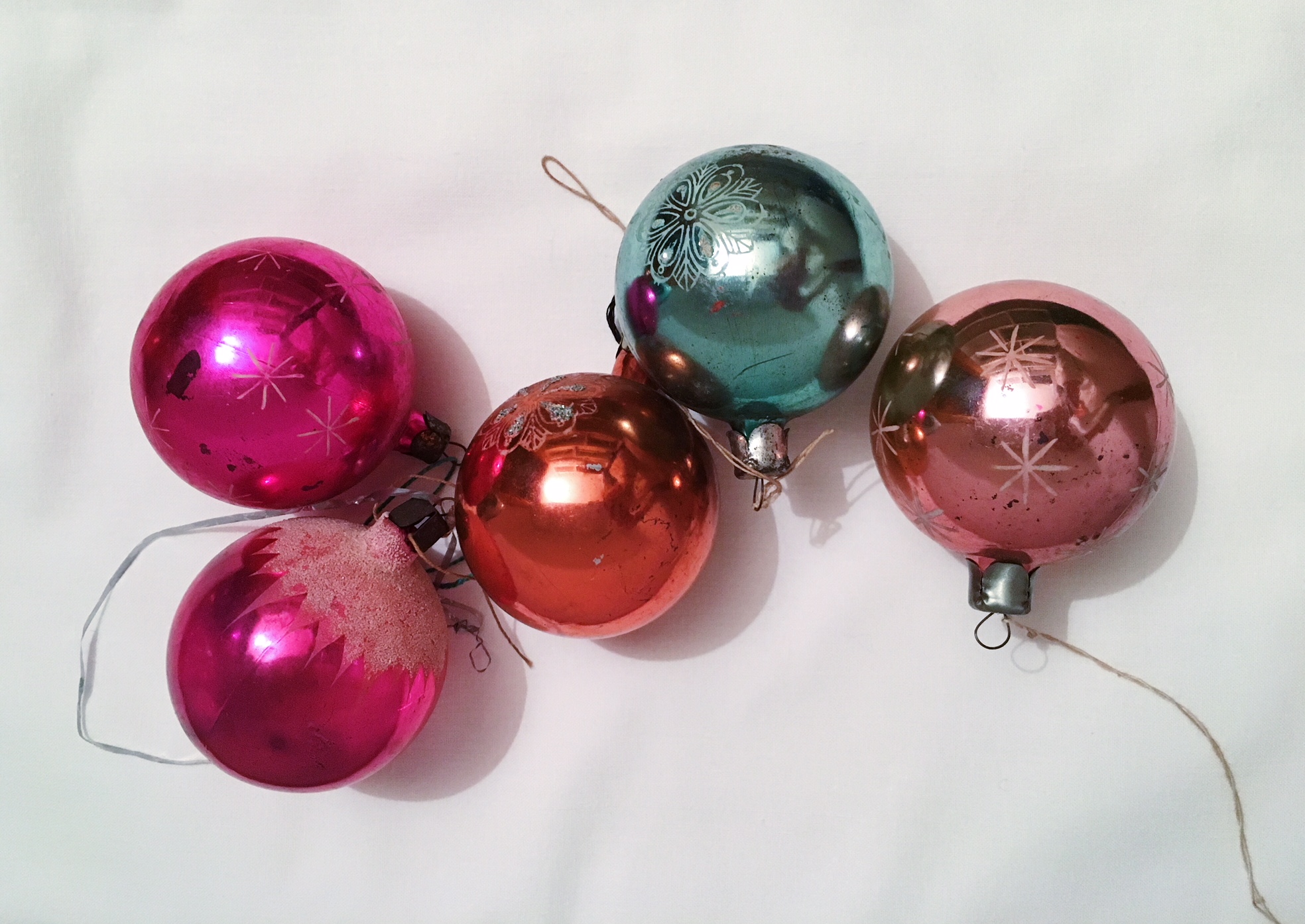Voici les boules de Noël vintage que j’ai trouvées dans ma famille :