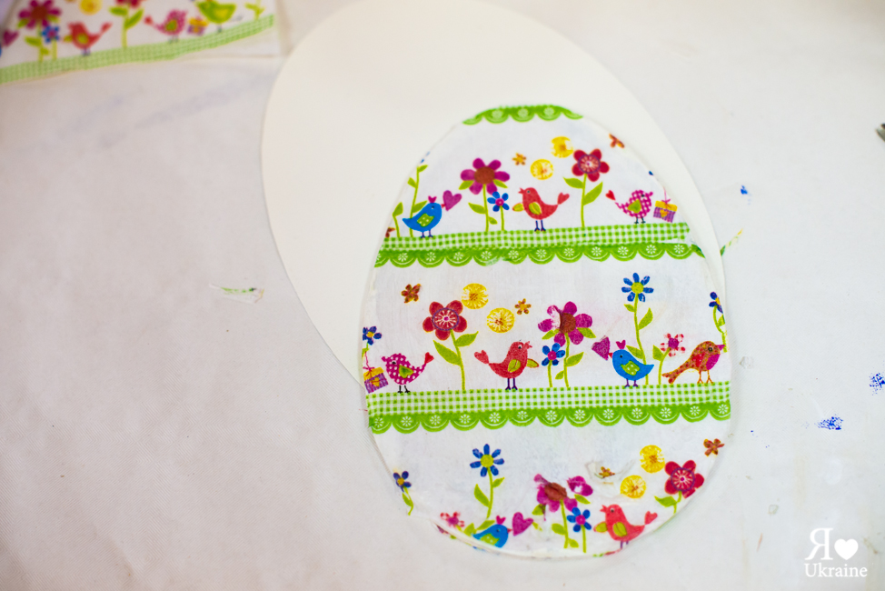 L’école ukrainienne nous a fourni les pyssanka en bois venues directement d’Ukraine que nous avons peint en blanc avec de l’acrylique. Puis nous avons découpé les dessins et les ornements que nous avons par la suite collés sur du bois. Cette technique est très bien adaptée pour les petits et les grands ce qui a permis à chacun d’aller à son rythme.