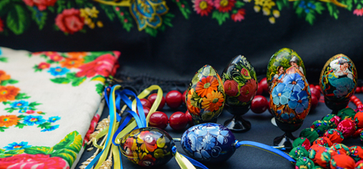 Les châles, les œufs peints (pyssanky), les colliers et les bracelets, les boucles d’oreilles, les serre-tête rappellent leurs origines ukrainiennes et révèlent du folklore avec une touche de modernité.
