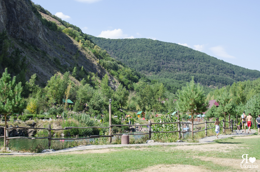 Situé entre la montagne rocheuse Chorna Hora (montagne noire) et la rivière Tissa, cette base de loisirs vous propose un des meilleurs séjours en Transcarpatie. Pureté d’eau (ancienne carrière, 8 mètres de profondeur, eau de Tissa, purifiée et filtrée, circule tout le temps) et d’air, nature pittoresque, silence sont appréciés par tous les touristes qui viennent y séjourner. L’accès facile dans l’eau pour les petits et pour les grands vous permet de venir en famille sans peur, les maîtres nageurs sont sur place pour vous surveiller. La sectorisation du territoire permet à tout le monde se sentir « dans son coin ». Tout est bien réfléchi et construit : les arbres vous séparent des voisins sans faire trop d’ombre. Les cabanes sont proposées sur une place réservée, avec deux chaise-longues, barbecue, point d’eau et poubelle pour un repos comme chez soi. Deux bars-restaurants sur le territoire proposent les boissons, ainsi que le repas traditionnel de bonne qualité.
