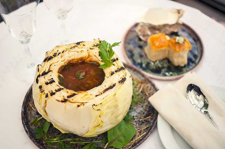 Et pour terminer, Kanapa, le dernier restaurant d’Oleg Skrypka, frontman du groupe Vopli Vidopliassova, situé à la descente St André, endroit stratégique et touristique. Ce restaurant salon se décrit comme un lieu simple mais qui aime l’élégance et qui apprécie l’attention. Kanapa aime belles fêtes et grandes compagnies. Kanapa s’intéresse à l’art, à la littérature, à la musique moderne et ethnique. Kanapa suit les traditions et aime la cuisine ukrainienne, celle d’avant la Révolution, celle qui se formait sous l’influence de l’Austro-Hongrie et de la France. En plus, Kanapa n’est pas conservatrice, vous allez y trouver une approche novatrice et une nouvelle interprétation des plats traditionnels, cuisine moléculaire. Les recettes sont dénichées dans tous les coins de l’Ukraine, retravaillées, améliorées et perfectionnées pour obtenir ce résultat magnifique qui chatouillera vos papilles.