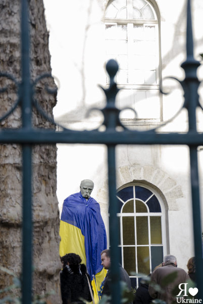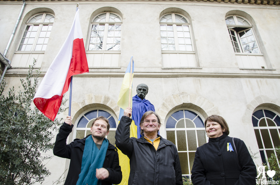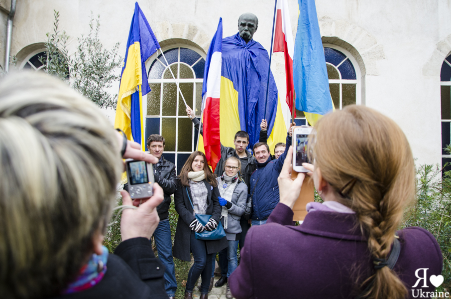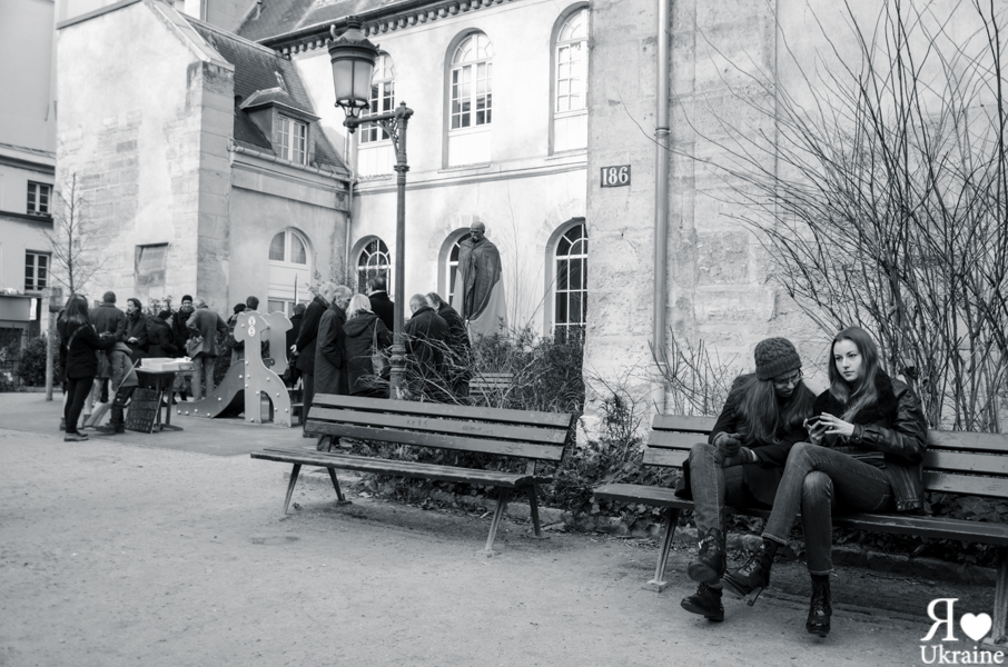 Le 5 janvier 2014, une manifestation plutôt familiale s’est tenue square Chevtchenko à côté de l’église ukrainienne St Volodymyr le Grand. Et même la vielle de Noël ukrainien, les Parisiens sont fidèles à leurs idées. A l’occasion, Taras Chevtchenko s’est paré de ses plus beaux habits.
