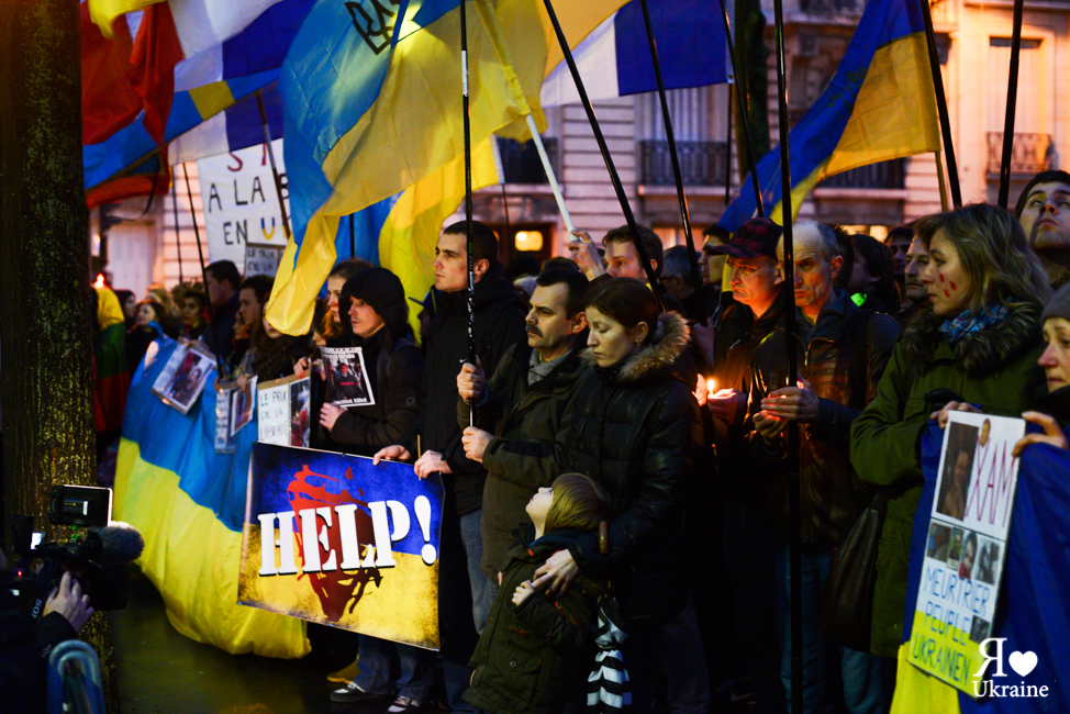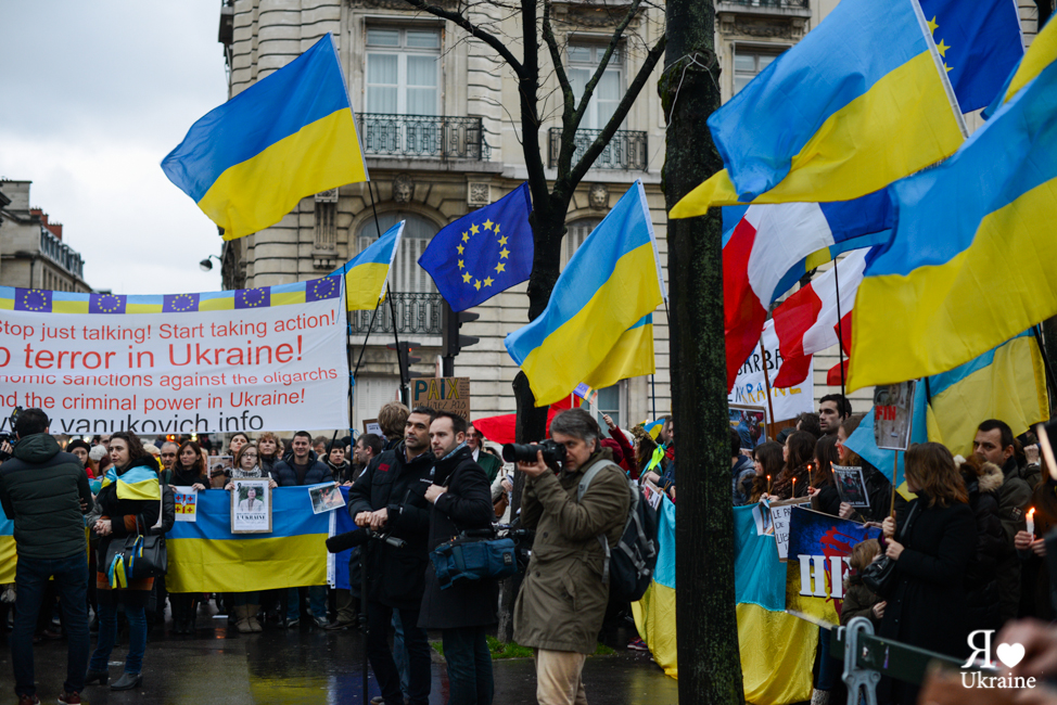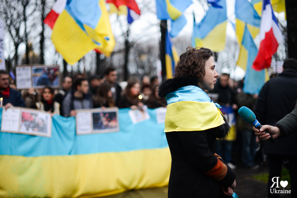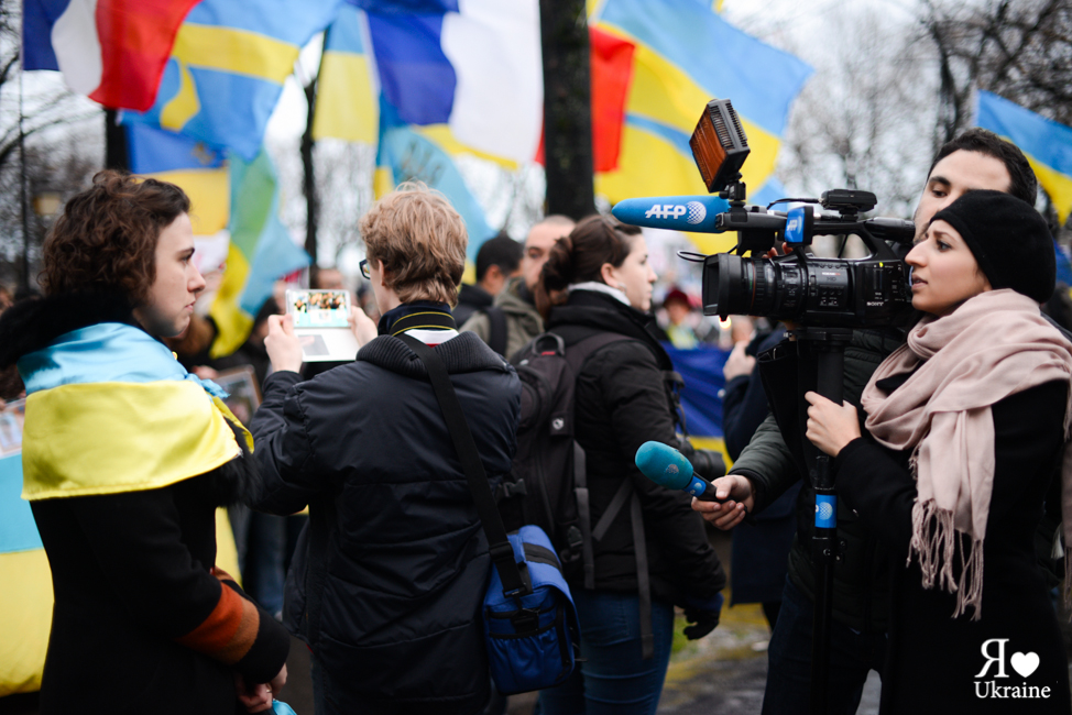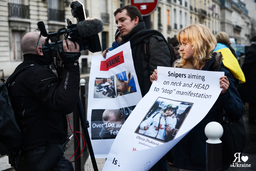 Les manifestants, réunis près du Ministère des Affaires étrangères, étaient abasourdis par les violences des derniers jours en Ukraine, tristes, inquiets, mais déterminés pour exiger des sanctions à l’UE et prêts à informer objectivement l’Europe. Daniela a donné une interview au journaliste de l’Agence France Presse en expliquant la volonté du peuple ukrainien.