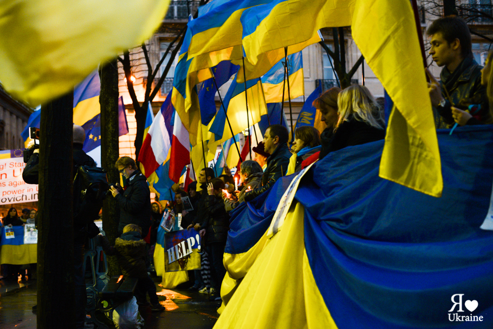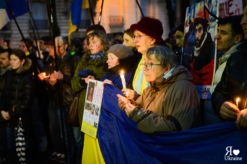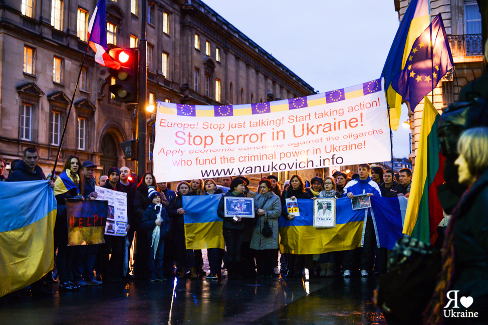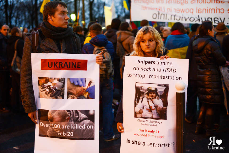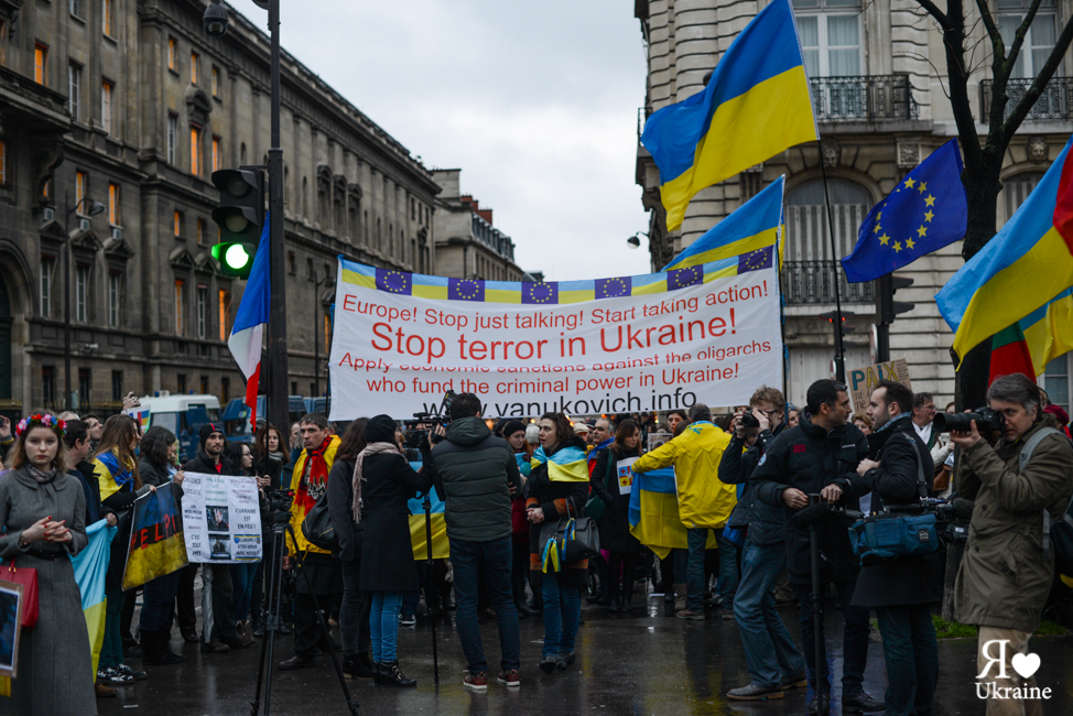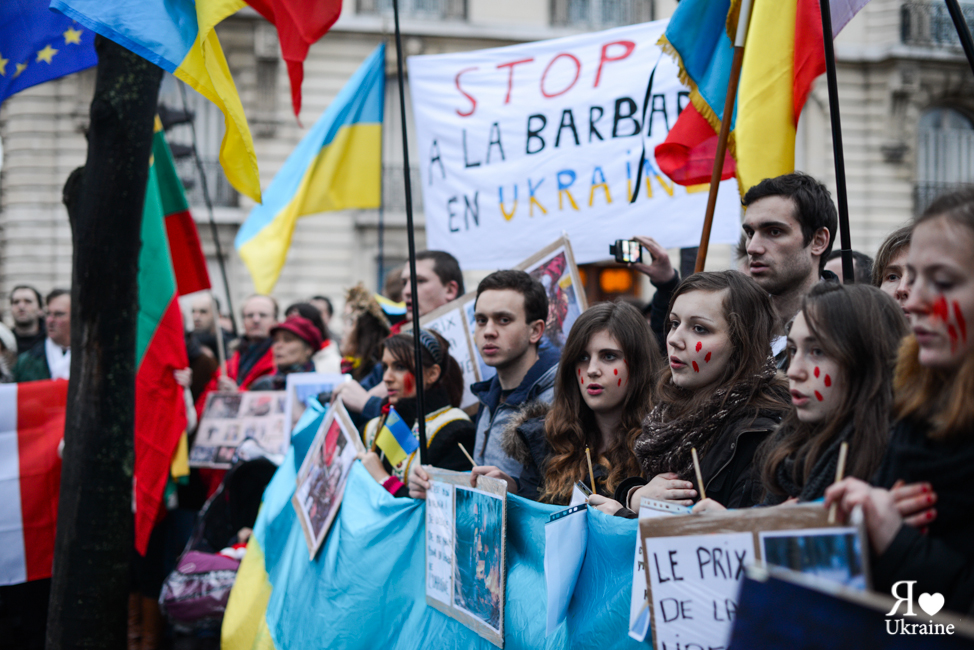 Les manifestants, réunis près du Ministère des Affaires étrangères, étaient abasourdis par les violences des derniers jours en Ukraine, tristes, inquiets, mais déterminés pour exiger des sanctions à l’UE et prêts à informer objectivement l’Europe. Daniela a donné une interview au journaliste de l’Agence France Presse en expliquant la volonté du peuple ukrainien.