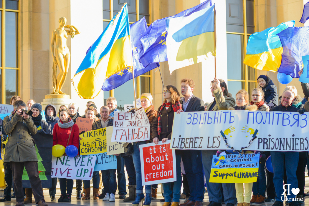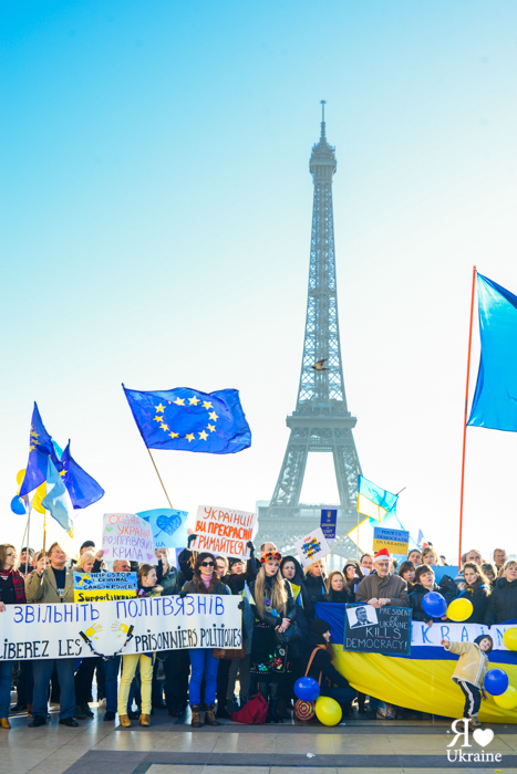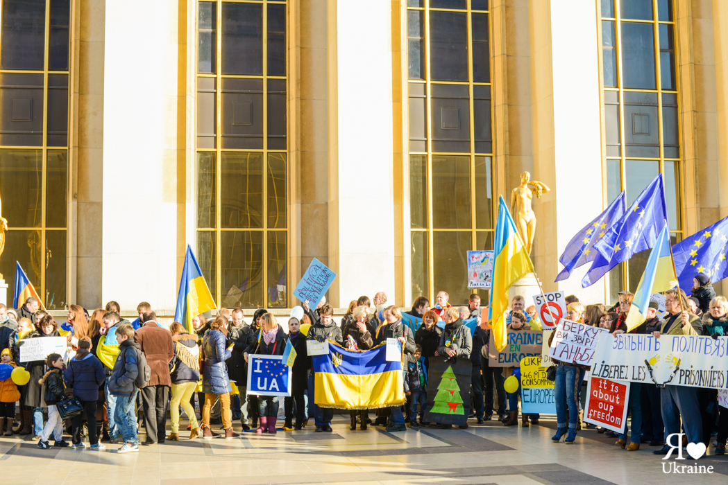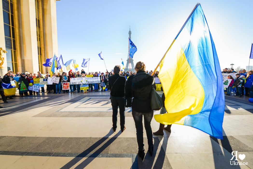 Une cinquième manifestation a eu lieu aujourd’hui, le 15 décembre, à Paris sur la Place des droits de l’homme à Trocadéro. Les Ukrainiens de France, leurs amis et ceux qui soutiennent l’Ukraine sont venus pour s’exprimer et soutenir l’Euromaïdan de Kyïv et les autres villes ukrainiennes.