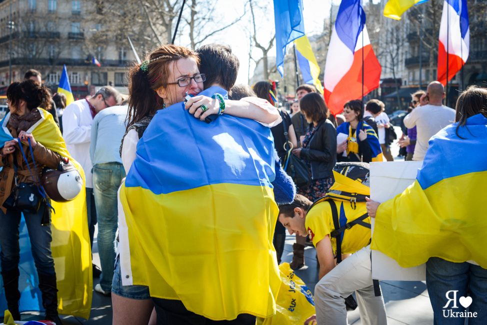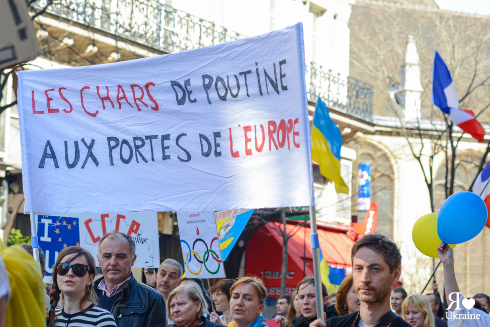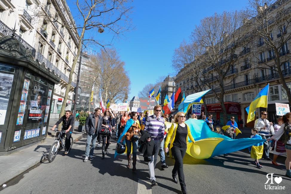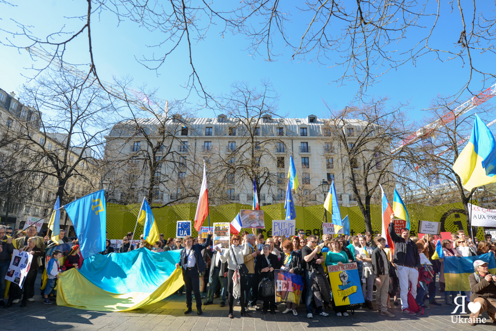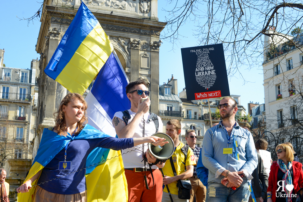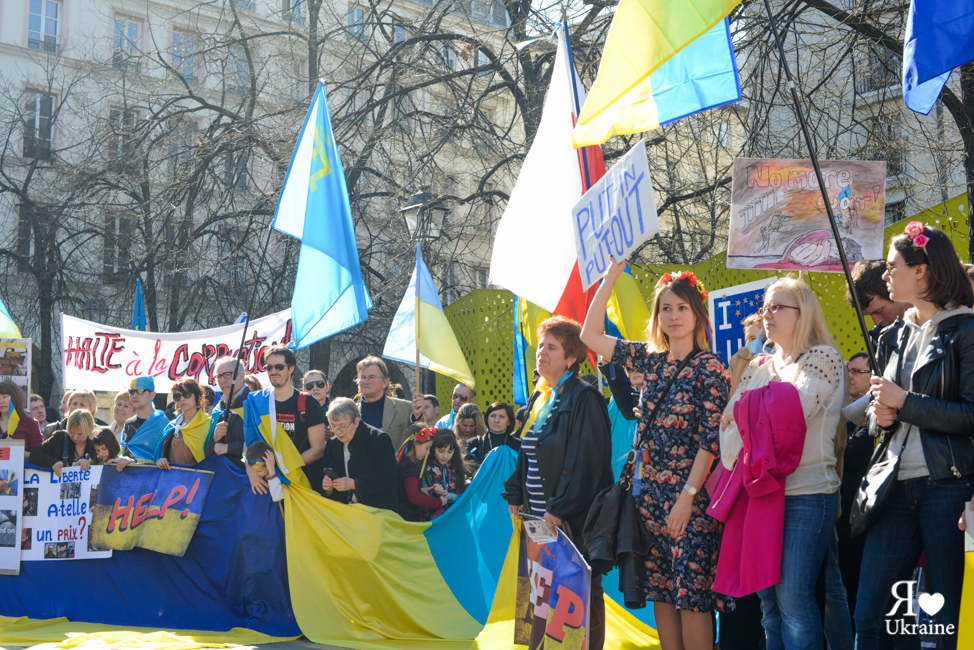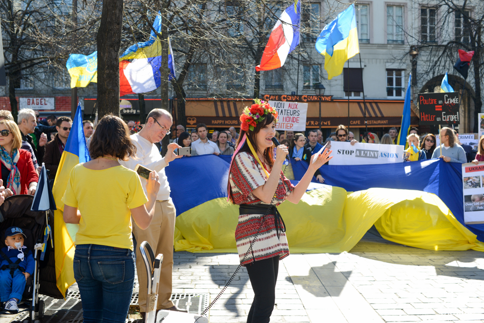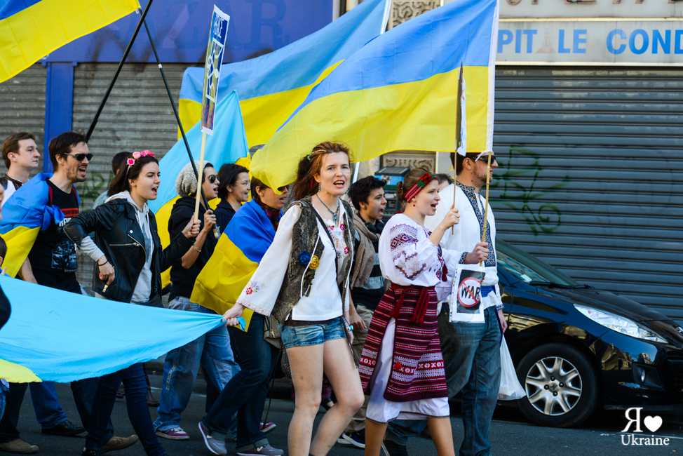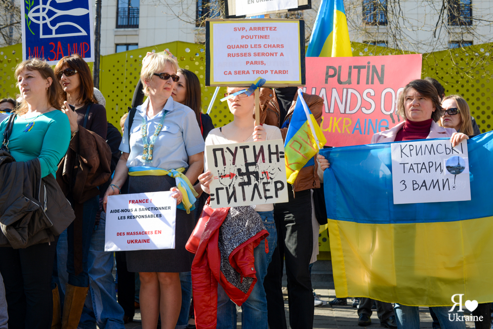 Aujourd’hui les parisiens d’origine ukrainienne et ceux qui sont venus les soutenir se sont rassemblés place de la République pour un cortège afin de s’exprimer contre le référendum illégal en Crimée, le régime poutinien et la paix en Ukraine.