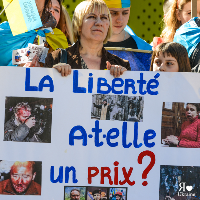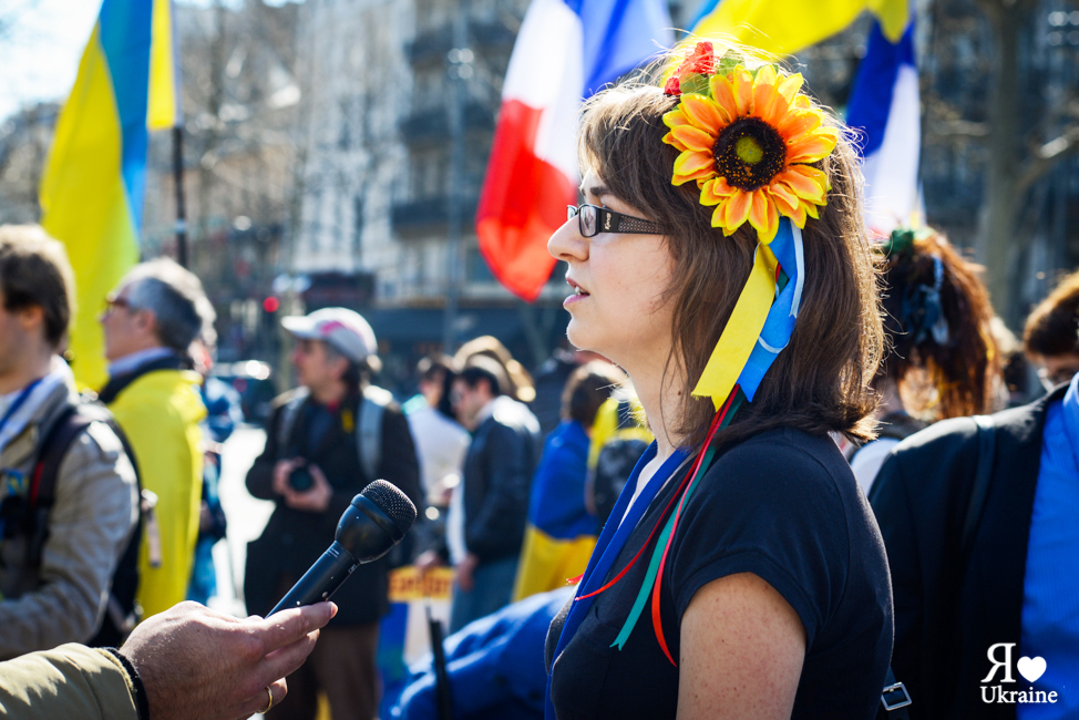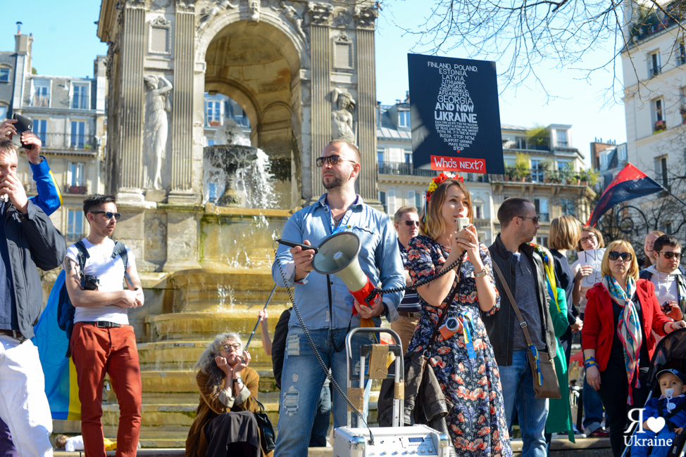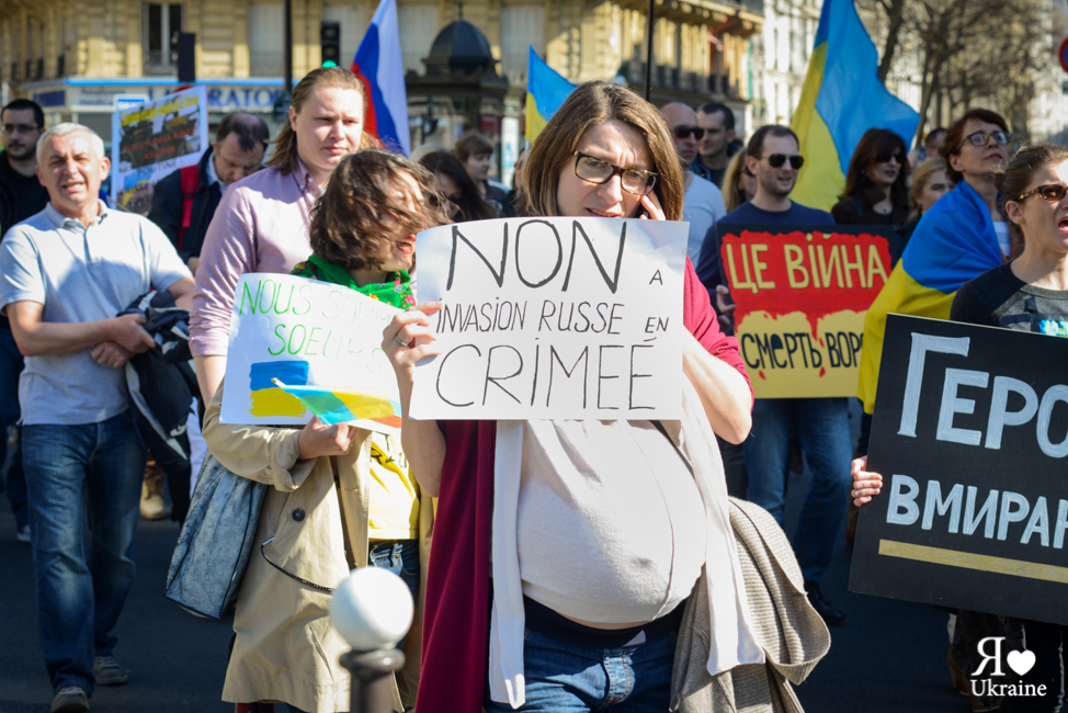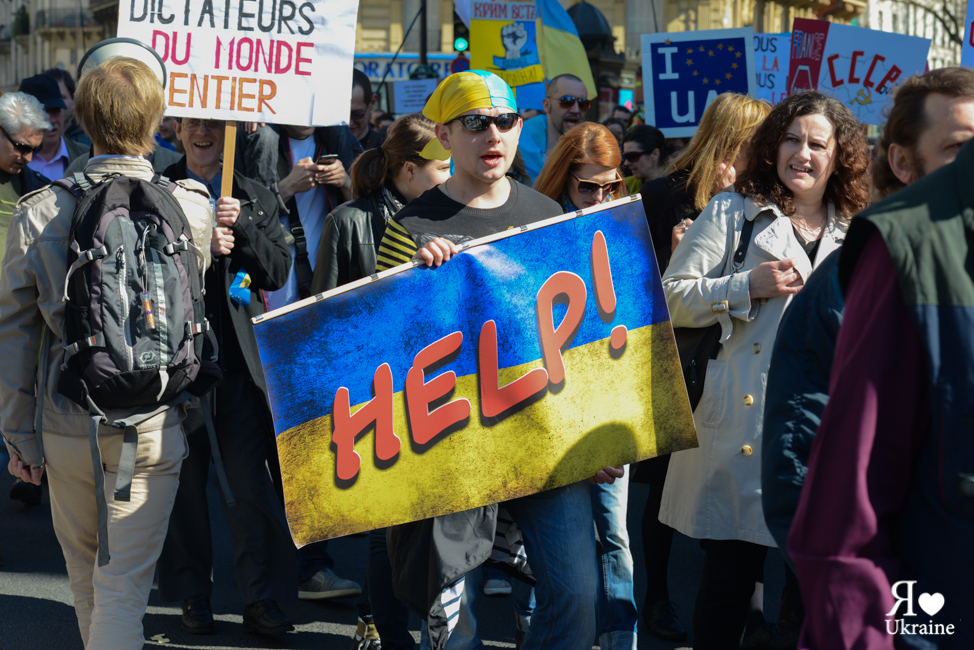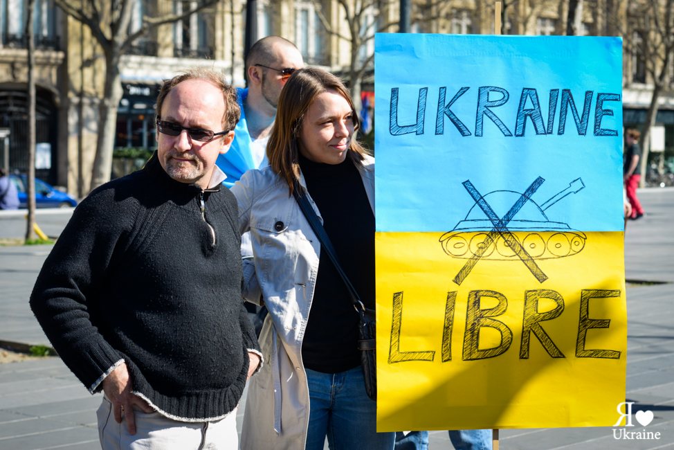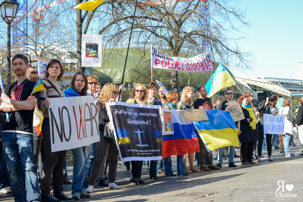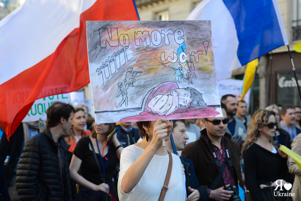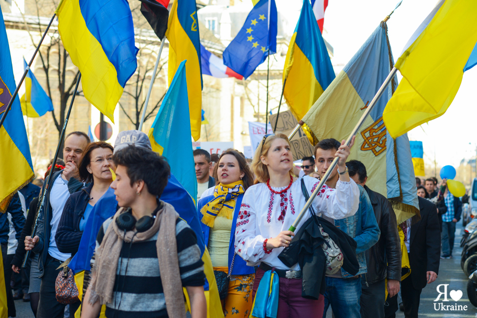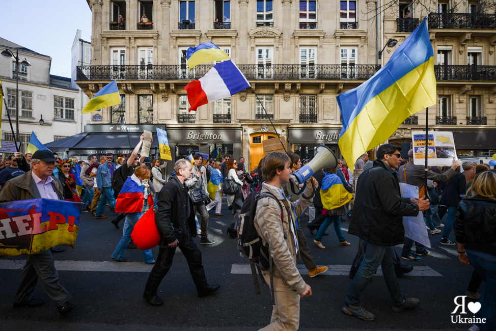 Aujourd’hui les parisiens d’origine ukrainienne et ceux qui sont venus les soutenir se sont rassemblés place de la République pour un cortège afin de s’exprimer contre le référendum illégal en Crimée, le régime poutinien et la paix en Ukraine.