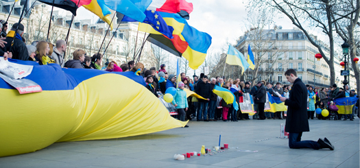 Une manifestation en hommage aux victimes de la révolution de Maïdan a eu lieu hier à Paris, place de la République.