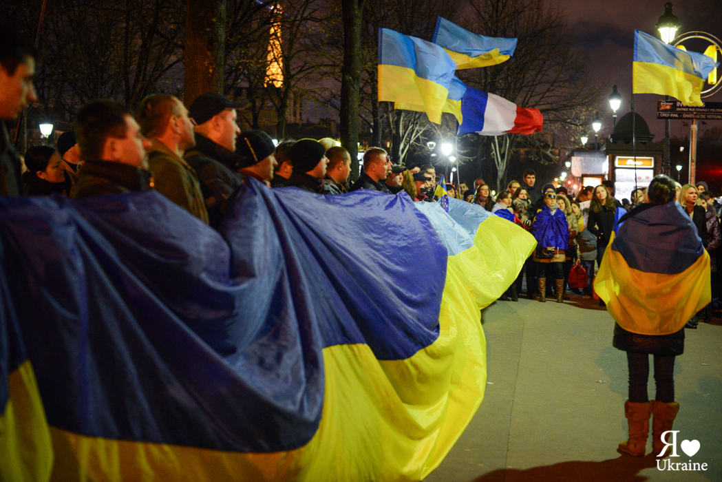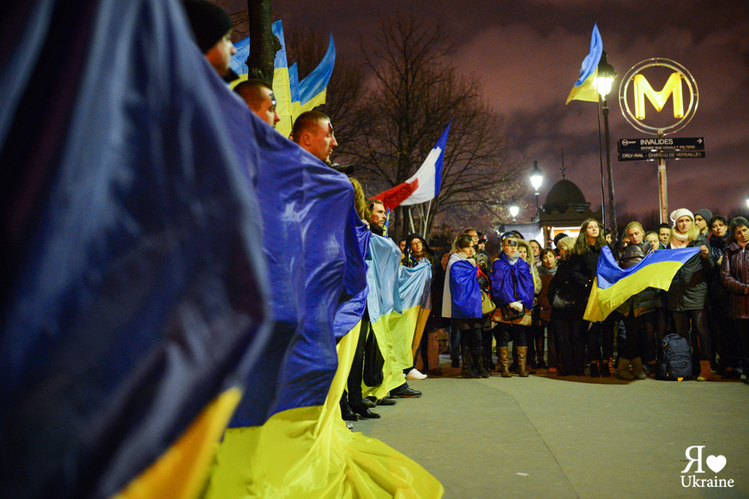 Hier soir (vendredi) les Ukrainiens et leurs amis se sont de nouveau rassemblés cette fois aux Invalides à côté du Ministère des Affaires étrangères pour soutenir les Ukrainiens.